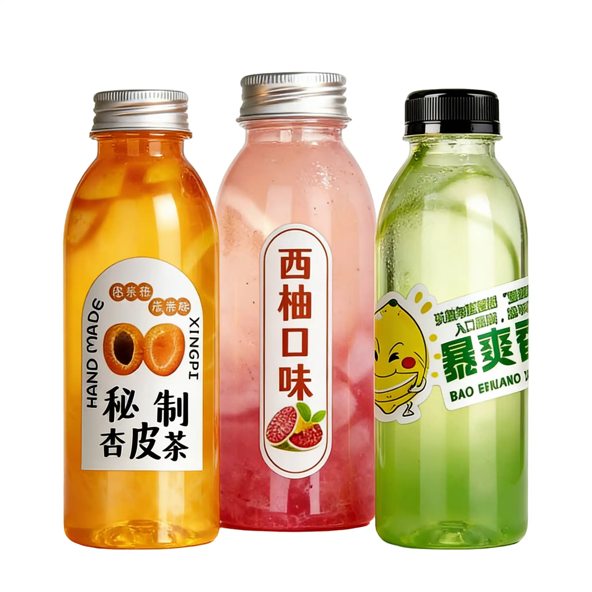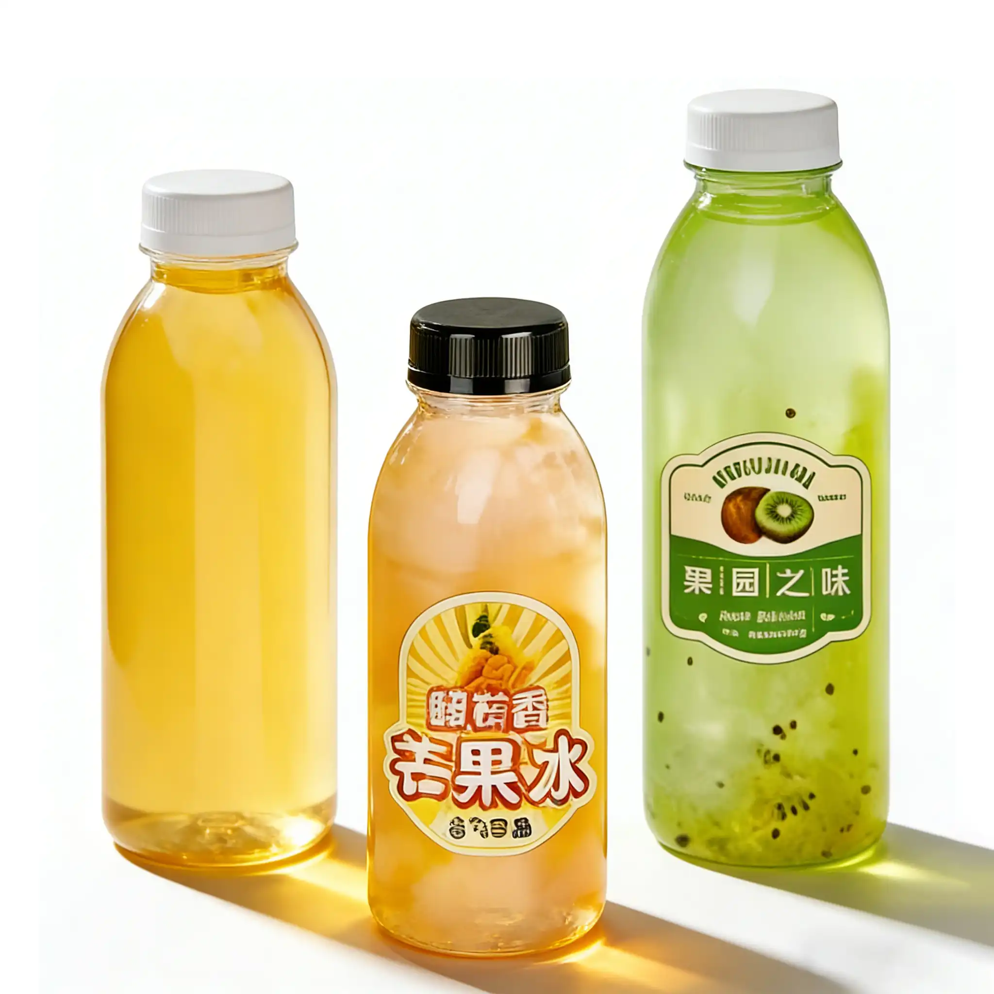 In Stock Small Transparent Plastic PET Juice Coffee Milk Beverage Bottles With Label